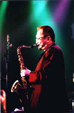 さあ、お次はいよいよ、話題沸騰『ピンクボンゴ』の登場です。メンバーは、宮本大路(Sax) 高橋ゲタ夫(b,vo)宮崎カポネ信義(gt)中島 徹(p)竹田達彦(dr)。最初の曲はオリジナル『ピンクボンゴのテーマ』。ピンクボンゴファンなら、この曲のイントロを聴いただけで、今から始まる興奮のひとときに想いをを馳せて浮き足立ってしまうことでしょう。メンバー全員、強者ばかり、音は一流です。次の曲もオリジナルで『哀愁のバクダッド』。最初のコーランのような、お経のような、無気味なコーラスに会場は「何じゃ、こりゃ。」度胆を抜かれましたね。そこから広がる中近東風の妖しく切ないメロディに皆いちころになったところで、ゲタ夫さんがスペイン語で熱唱する『情熱の花』。ゲタ夫さんの艶っぽい歌声に、大路さんのむせび泣くサクソフォン。前半3曲で「いったい、ここはどこ?」てな感じで私達を異次元へ連れていってくれました。