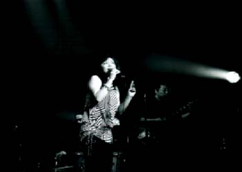 そして満を侍して名古屋の歌姫メグさんが登場、歌うは『スターダスト』。美しいメロディーでいっきに、ジャジーな世界です。そして次の曲、イントロが始まると。メグさんが羽織っていたスパンコールの上着を脱ぎ捨てました。何が始まるのかと思ったら、「ウ〜ララ、ウ〜ララ、ウ〜ラウララ♪」。まさかの『狙い打ち』です。メグさんがステージで踊り、お客様も続々とステージ前に出てきて踊り。会場の盛上がりは沸点に達しました。いやぁ、すごすぎる。しかし、これで終わりじゃなかったんです。さらなる衝撃が待っていたのです。思いきりジャズな雰囲気で始まった次の曲、そう思っていたらおもむろにギターを置いて立ち上がり歌い出した宮崎カポネ。歌は『足出まとい』、ム-ド歌謡の名曲です。「足出まと〜いだ〜から♪」と歌うカポネさんにメンバー全員がコ-ラスをつけます。私はこの曲聴くの3回めなんですけど、それでも聴くたびやられちゃいます。(キャバレロでの PINK BONGO ライブレポートもご参考にどうぞ。)そして『足出まとい』でやられた後は締めの1曲『ザ プリーチャー』。会場を一気に興奮の渦へと巻き込んだピンクボンゴは大声援と大拍手の中、去っていきました。