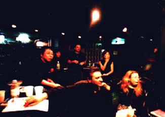 ここで、BOSSが私をステージに呼んでくれました。全く聞いていなかったので、私はカウンタ-でスタッフと後片付けの打合せをしていました。そしたら誰かが「デミちゃん、呼んでるよ。」と言うので、楽屋のスタッフが呼んでいるのかと思ったら、ステ-ジからBOSSが呼んでました。ビデオを見て初めて、あんなに長い間呼ばれていたことを知りました。どこから上ったらいいのかわからなくて、なんとかステ-ジ右側からBOSSの隣に行き、そしてBOSSから皆さんの前で感謝の言葉をもらいました。(当日は心構えもなく訳もわからずステ-ジに立ったので、BOSSの言葉もあんまり聞こえてなくて、ただライトがこんなに眩しいんだと思う他は何の余裕もなかったけれど、ビデオを見たら嬉しくてもったいなくて涙が出てしまいました。当日、泣かなくてよかったです。)