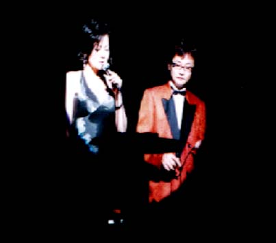 その後は、歌姫の登場です。最初は平野クミ、曲は『ポルカドッツ&ムーンビームス』。クミちゃんらしい可愛い曲です。司会者が『癒し系ボーカル』と連発したことによってお客様の記憶にインプットされ、その地位を不動にしたことは間違いありません。次は赤崎真由美、ヴァイオリンの高橋誠が加わり、曲はジャズラテンアレンジの『ムーンライトセレナーデ』。キャバレロの常連、熟年紳士達にはたまらない選曲ですね。最後は渋谷みちる、曲は『ジンジ』。ボサノヴァの名曲を伸びやかに歌ってくれました。